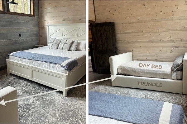 Nestled in the same room as the queen bed, this single bed offers a comfortable and private sleeping spot, ideal for kids or an extra guest.
